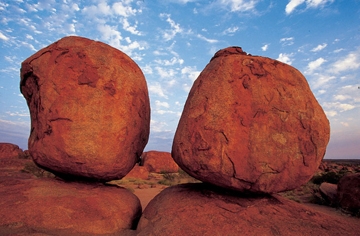 In Central Australia, somewhere between Darwin and Alice Springs, there is a patch of desert covered with gigantic, perfectly round boulders. This dry, surreal area is called “Devils Marbles,” because the boulders are scattered about like marbles and there’s a feeling in the air that the Devil will return at any moment to finish his game.